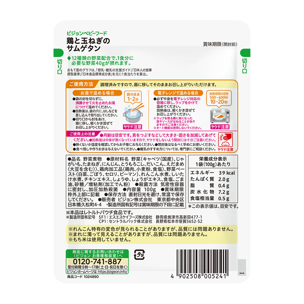 | 製造所固有記号 | SF1:エスエスケイフーズ株式会社 静岡県焼津市高新田477-1 CP1:セントラルパック株式会社 長野県松本市笹賀5652-52 |